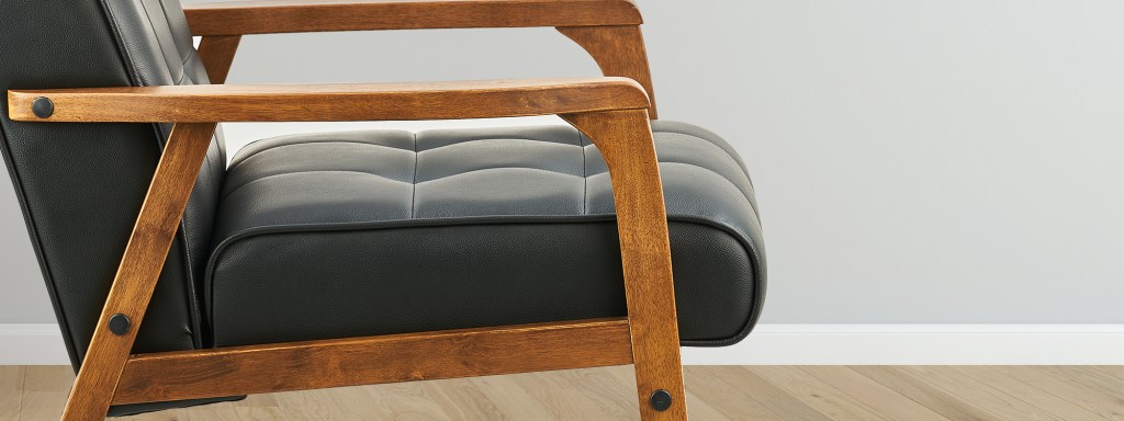 The Tucson armchair comes in an espresso buttoned leatherette seat over a wooden frame in cocoa finish. Add an element of modern style and comfort to your living room space with the Tucson single seater. Crafted from premium quality Malaysian oak and Vinyl, this is a strong and durable piece of furniture which can light up a room on its own!